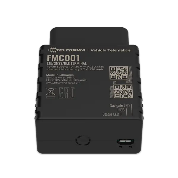 Teltonika FMC001 represents next step in communication technology – this is the first Plug and Track LTE OBD device with GNSS and Bluetooth connectivity. Possibility to read OBD II parameters, effortless installation and detailed accelerometer data provides a compelling solution. This is perfect tracker for a wide range of applications – fleet management of light commercial vehicles, car rental & leasing, driver log-book, insurance telematics (UBI) and so on. Device supports various Bluetooth Low Energy sensors, beacons, firmware and configuration update via Bluetooth.